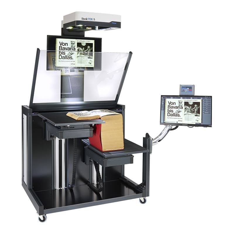 The BookTEK 5 V1A-C50 is designed for demanding digitization projects, combining speed, precision, and ease of use. Capable of handling originals up to A1 size and book thicknesses of 35 or 50 cm, this scanner streamlines workflows with its motorized glass plate and versatile book cradle. Whether working in fixed, glass-free, or fully automatic modes, this scanner delivers exceptional image quality for even the most challenging tasks.